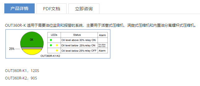 GOLDAiR 摇臂式油位开关OUT360R系列